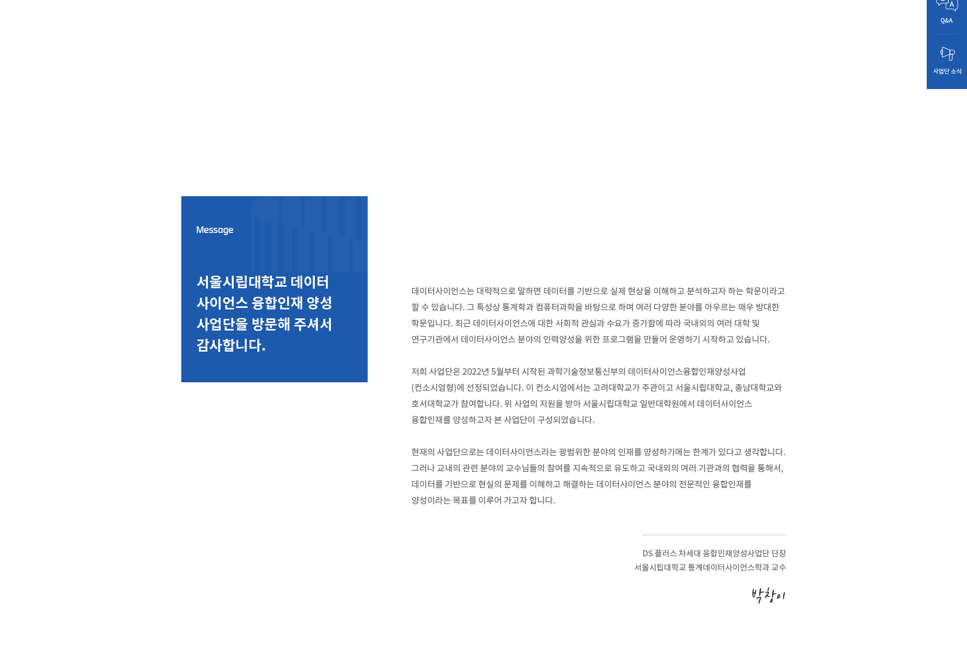 홈 > 사업단 소개 > 인사말
